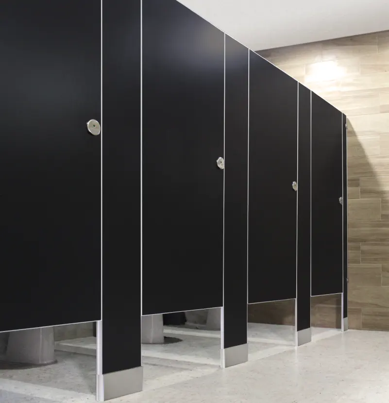 Laminado compacto: Ambas caras de la mampara cuentan con un acabado de laminado compacto de 3mm, un material antigrafiti y sumamente resistente a la abrasión. Además es 100% impermeable y libre de corrosión, por lo que es altamente recomendado para todo tipo de clima y usuario.
