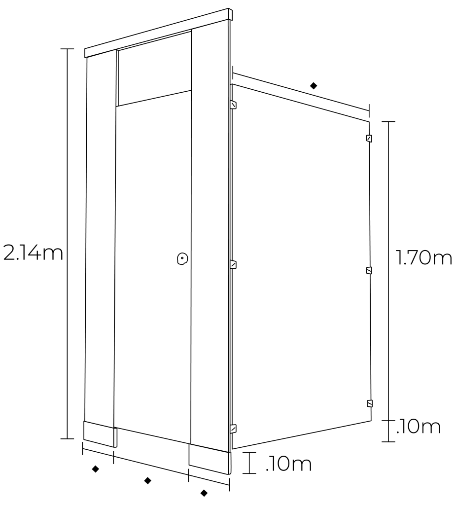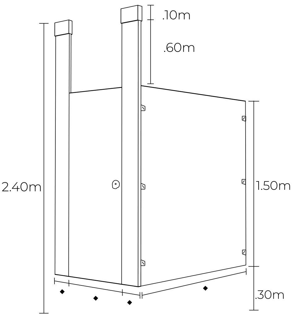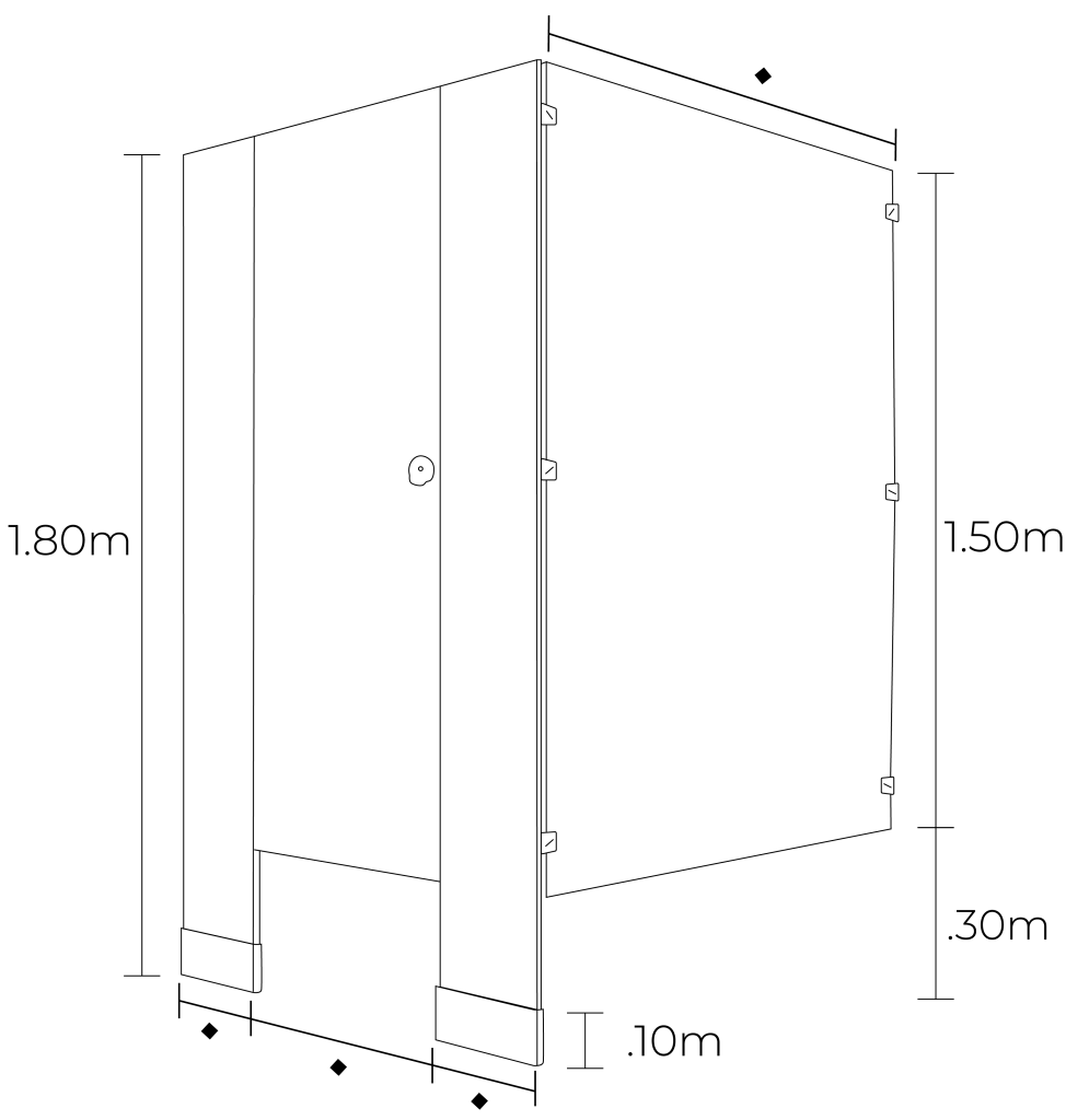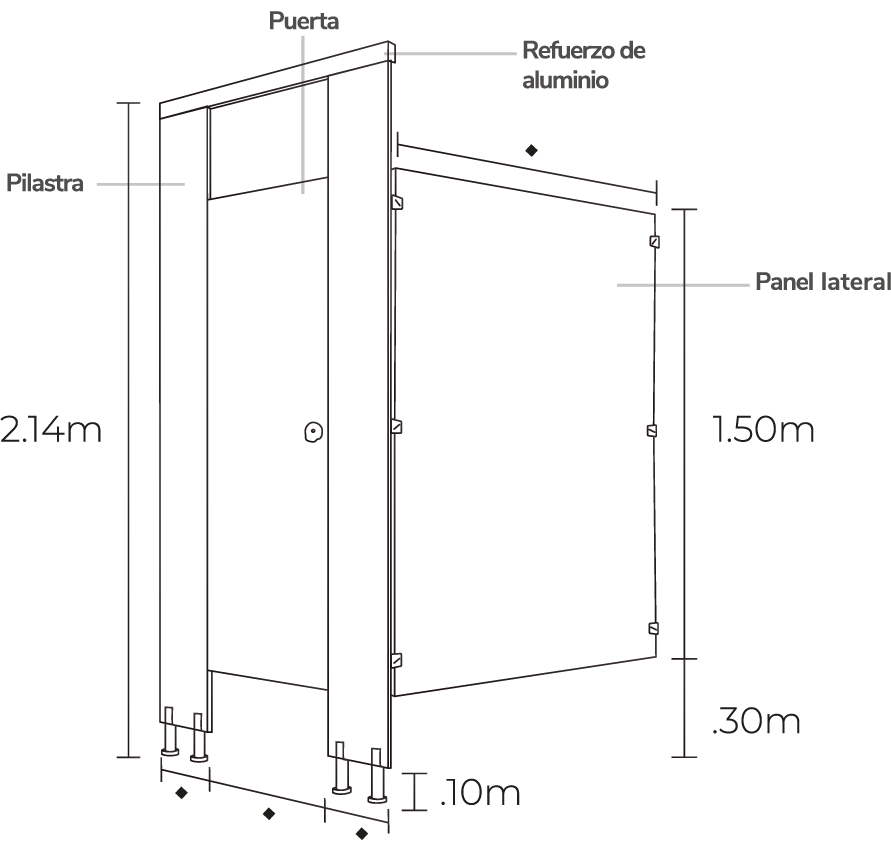 Laminado compacto: Ambas caras de la mampara cuentan con un acabado de laminado compacto de 3mm, un material antigrafiti y sumamente resistente a la abrasión. Además es 100% impermeable y libre de corrosión, por lo que es altamente recomendado para todo tipo de clima y usuario.